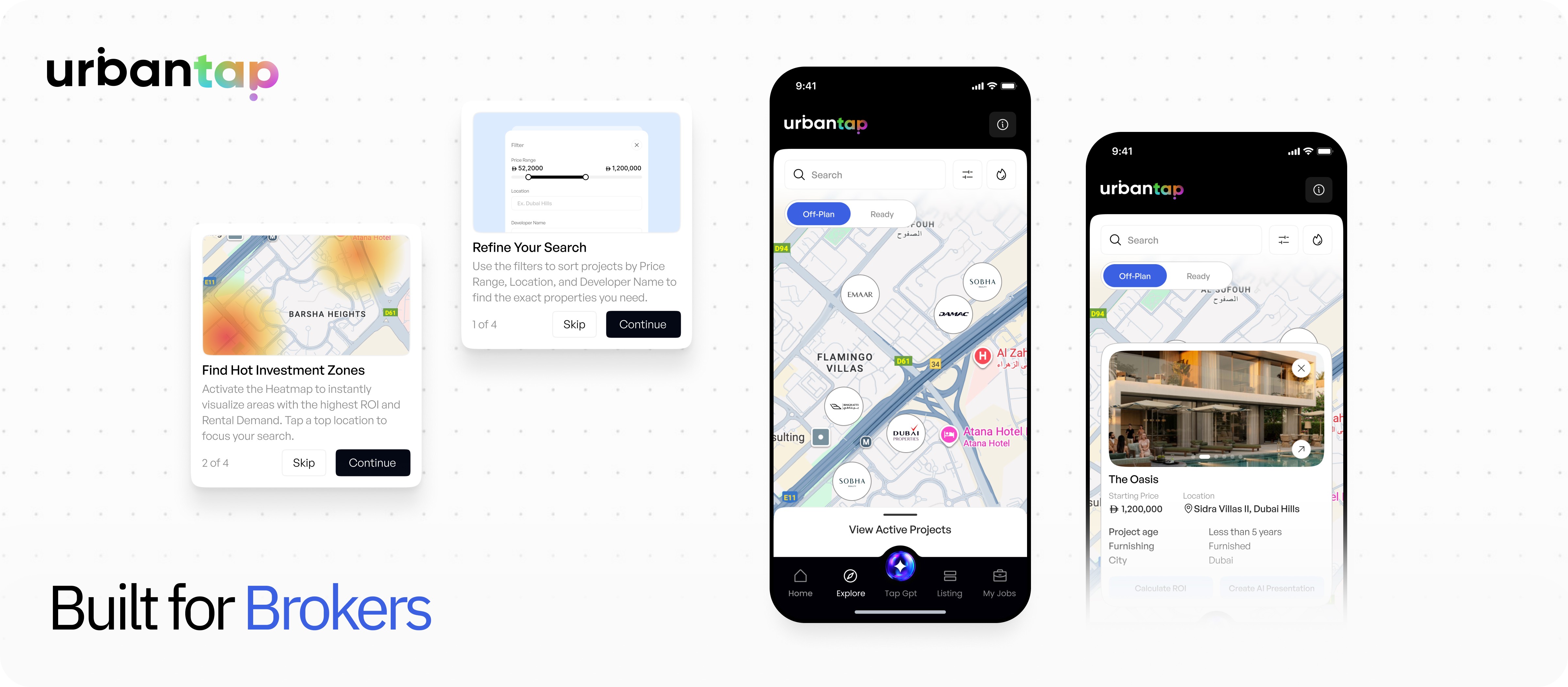 A map-based browsing experience helping brokers discover and compare projects faster, driving 22% higher property discovery and 24% faster ROI checks.